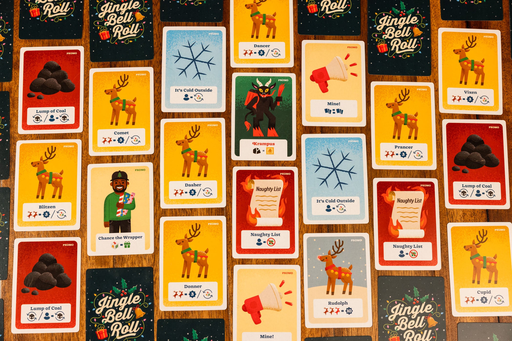 This mini-expansion for Jingle Bell Roll introduces a bit more mischief into gameplay. Steal cards from other players and freeze their turns to stop them from scoring. Roll the Coal Die with every dice roll and potentially score Krampus enough points to ruin Christmas!
